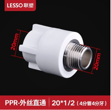 联塑 LESSO PPR水管配件4分20阀门6分25管材接头配件热熔内外丝直接弯头 外螺纹直通20*1/24分管4分牙
